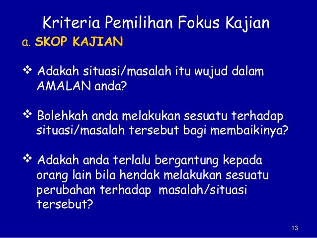 Reka Bentuk Prosedur Penyelidikan Kriteria Menentukan Fokus Kajian Penentuan Fokus Berdasarkan Perkara Berikut Skop Kajian
