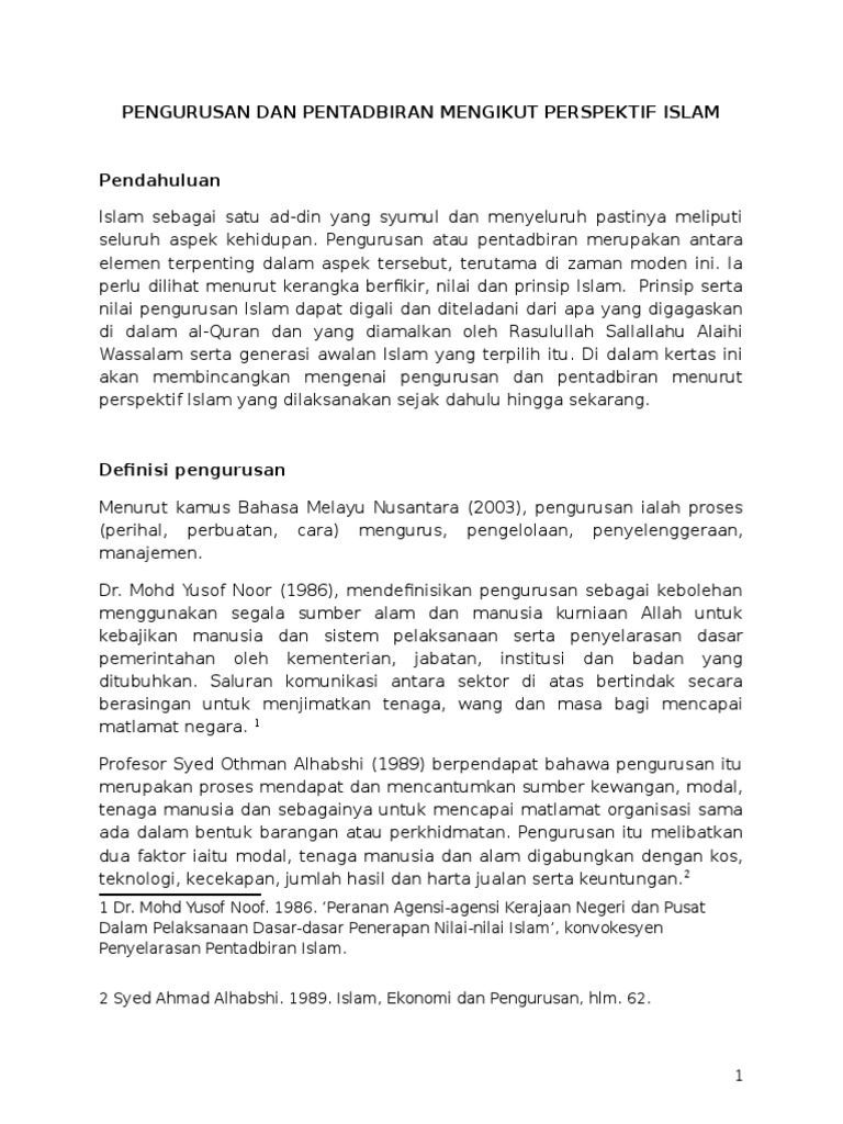 Pengurusan Dan Pentadbiran Islam Esei Pdf